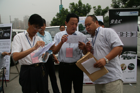 在展示会现场专家评估组分为小型汽油、小型柴油和中型客车三个小组,以认真的科学态度、宽阔的眼界、严谨的作风和求实的精神,通过查阅车辆技术资料,咨询生产厂商技术人员、实地测评等方法对展示会现场的每一辆客运车辆进行了全面了解和评分。通过对测评数据进行科学的评估和计算,最后确定9家全国著名的客运车辆生产厂家入围陕西省通村客运市场。在评估情况通报会上,评估组专家对参展厂商积极来陕参加这次展示活动,以实际行动支持陕西省通村客运工作给予了充分肯定。省交通厅运输管理局李抗美副局长在通报会上向各市区道路运输管理机构负责人结合评估情况对下阶段全省通村客运工作提出了希望和要求,并向参展厂商客观分析了参展车辆的综合评判。李抗美强调,这次通村客运车辆展示会只是我省通村客运系统工作的一部分,全省道路运输行业一定要以这次展示会为契机,认真落实好全省通村客运现场会精神,进一步明确目标,提高服务意识,全面推进全省通村客运工作发展。厅运管局张江怀纪委书记指出,本次展示会入围的企业应按照市场规律做好营销工作,落选的企业也不要气馁,做好其他客运市场销售工作。参展厂商纷纷对这次展示会承办单位优质的服务、专家组公正透明的评估表示赞许。