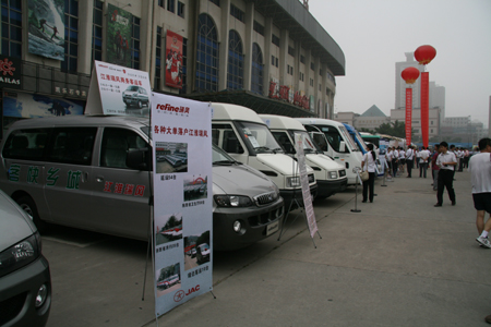 为贯彻落实省政府全省通村客运现场会精神,按照陕西省交通运输厅关于通村客运车辆补助工作的要求,厅运输管理局于7月28日在陕西省体育场承办陕西省通村客运车辆展示会。展示会本着选择安全经济、节能环保车型出发,组织全省各市区交通运输管理部门、道路运输管理机构和有关运输企业负责人26人组成专家考评组,对全国23家客运车辆生产企业的29种型号62款通村客运专用车辆进行技术指标、售价、油耗量、安全性能及服务等综合评估。