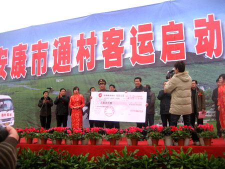 近年来,安康市把发展通村客运作为全面贯彻科学发展观,深入落实“三农”政策的一项重大举措,自省政府在白水县召开全省发展通村客运现场会后,市交通局和运管处结合安康通村客运实际,制定了《安康市通村客运发展规划》、《安康市加快全市通村客运发展工作的实施意见》,决定从2009年至2011年三年内,全市共计划新开通、延伸通村客运线路365条,新增、更新通村客运车辆1956辆。客运线路连接、贯穿全市200个乡镇、2480个行政村。