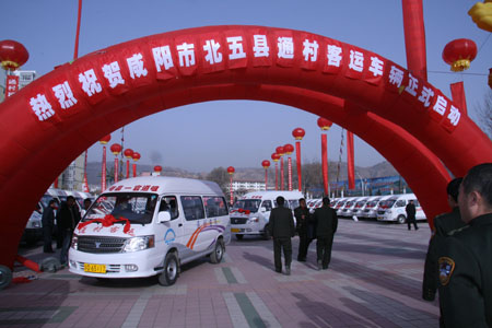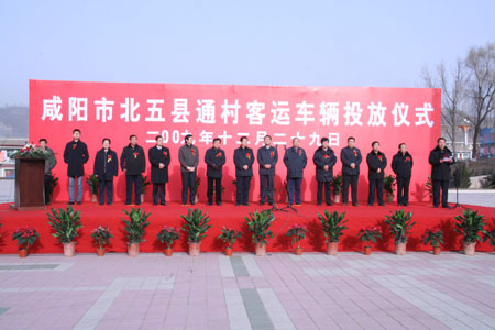 近年来,随着公路建设强势推进,对加快农村客运提出了新的要求。在市委、市政府和省厅的领导下,咸阳市按照路通车通的发展思路,大力发展通村客运,初步形成了以县城为中心辐射乡镇和行政村的城乡客运格局,基本满足了广大群众的出行需求。目前,全市共建成乡镇五级客运站78个,农村招呼站498个,开通农村客运班线253条,投放客运车辆1332辆,乡镇通车率达到100%、行政村通达率达到93 %。本次投放94辆通村客运车辆,新开通通村客运线路35条,再通达69个行政村,解决了8万多群众的出行问题。