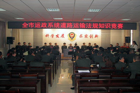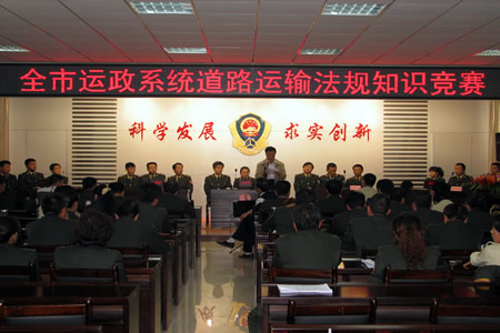 为进一步加强道路运输管理队伍建设,提高运政人员执法水平,增强全市道路运输管理干部职工学法、普法、守法和依法行政意识。近日,铜川市运管处举办了全市道路运输法规知识竞赛。由各县、区运管所和处机关、处稽查队挑选出来的5个代表队共15名运政员参加了竞赛,竞赛内容包括道路运输法律法规、行业标准、工作规范、党风廉政等方面。竞赛选拔出的优秀选手将代表铜川运管处参加厅运管局举办的全省道路运输法规知识竞赛。