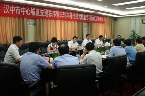 7月12日,汉中市中心城区交通秩序暨三轮车非法经营载客专项行动工作会议在汉中市政府召开,会议对中心城区交通秩序和整治三轮车非法经营载客专项行动进行了安排部署,决定由市创建办、公安、交通、城管四部门联合整治三轮车非法经营载客行为。会上,公安交警部门汇报了上半年中心城区交通秩序整治工作的进展情况,交通运管部门宣读了《依法整治中心城区三轮车非法经营载客专项行动实施方案》。公安、交通、城管等相关部门对实施方案进行讨论和完善,并作了表态发言。