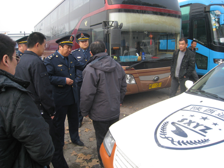 12月1日,根据公安部门有关“闽BY1581”等违法违规经营车辆长期超速、超员、不按许可线路经营的情况通报和各级领导批示精神,厅运管局与省公安交警总队组成联合执法小组,对西安市火车站周边各客运站场的营运车辆进行了排查,并对发现的违法违规经营车辆进行了查处。