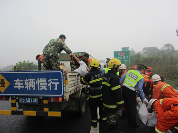 9月26日,西乡县在“十天”高速西乡至堰口出口段举行了大规模、跨行业的道路运输安全应急联合演练,安监、交警、运政、路政、医疗、消防等部门的60余人参加演练。应急演练模拟因雨造成道路垮塌,一辆货车因躲避塌方撞上防护栏,车头失火、车身变形、车上人员受伤被困。上午9时,演练指挥部接到报警后,演练人员迅速集结赶赴出事现场,交警部门立即对高速公路西乡出口与堰口出口段进行交通管制,并展开现场勘测;路政人员设障、封道;消防人员对火势进行扑救并利用专业破拆工具解救被困人员;医疗人员对伤员现场救护;运管人员协助疏散人员,疏导交通,并及时联系维修施救车辆,将肇事车辆拖离现场;公路养护人员立即对道路进行抢修。9时50分,事故路段恢复通行,演练过程中,各部门参演人员密切配合,各司其职,演练活动紧张有序、有条不紊,取得圆满成功。