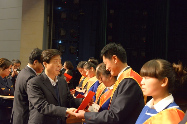 宝鸡市政府副市长武军代表市委、市政府做了重要讲话。武军在充分肯定宝鸡市交通运输行业近年来的巨大发展的基础上,对全市道路客运行业在精神文明建设中涌现出的一系列先进典型给予了高度评价,并提出三点要求:一要大力宣传“双十佳”、“服务标兵”的先进事迹。使“双十佳”、“服务标兵”更好地走进群众、贴近生活、推动发展。二是要深入学习“双十佳”、“服务标兵”的敬业精神。要把学习“双十佳”、“服务标兵”与群众路线实践教育活动结合起来,用先进思想教育人、引导人。三是要积极争当“双十佳”、“服务标兵”。要以“双十佳”、“服务标兵”为榜样,在推动新一轮交通运输行业大发展中建功立业,在平凡的岗位上创造不平凡的业绩,为全市经济社会发展做出更大的贡献。
