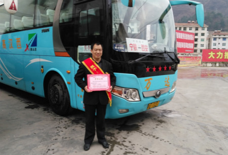 金大福系宁陕县万达客运公司客车驾驶员,自2009年从事客运驾驶工作以来,他踏实勤奋、兢兢业业,以高度的事业心和满腔热情始终坚守在自己挚爱的工作岗位上,坚持模范遵守交通法规、规范操作,文明驾驶、微笑服务,在平凡的岗位上用细心和耐心为广大乘客提供准点、舒心、安全、文明的乘车环境,赢得了广大乘客的高度评价。