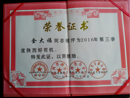 按照省文明办、省教育厅、省公安厅、省交通运输厅关于在全省深入开展“陕西好司机”、“陕西好交警”、“文明交通志愿者”评选活动的工作安排,经逐级推荐、公示评议,宁陕万达客运公司驾驶员金大福被评为2016年第三季度 “陕西好司机”,受到了省文明办、省教育厅、省公安厅、省交通运输厅的联合通报表彰。