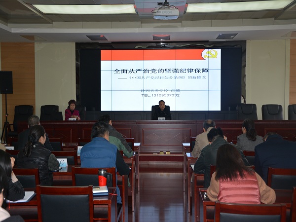 为深入贯彻落实新时代党的建设总要求和全面从严治党战略部署,充分认识新《条例》修订的重要意义,进一步严肃党的纪律,强化日常管理和监督,在局机关营造遵规守纪浓厚氛围,使全局党员领导干部职工自觉把党纪党规挺在前面,11月7日,省运管局召开全体干部职工大会,邀请省委党校闫朦教授以“全面从严治党的坚强纪律保障”为题,就新修订的《中国共产党纪律处分条例》进行了专题解读辅导。