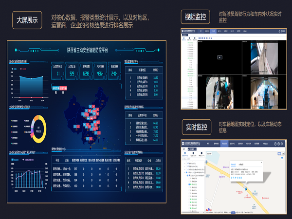 陕西省主动安全智能防控平台打破传统监管平台的局限,从单一的关注车辆升级为关注人,实现了对驾驶员和车辆运输全过程的安全监管预警,从事后被动的处理追责到事前主动的安全可控。提升了企业安全管理效能和效率,强化了科技手段在道路运输安全生产领域中的应用,提高了道路运输安全管理水平,将安全隐患扼杀在萌芽状态,降低事故的发生风险,切实保证了人民的人身与财产安全。