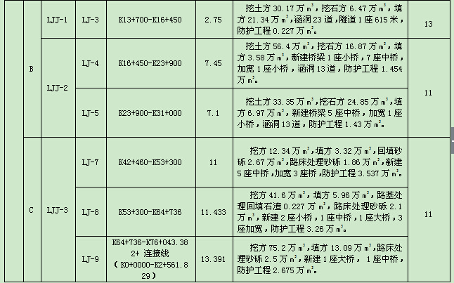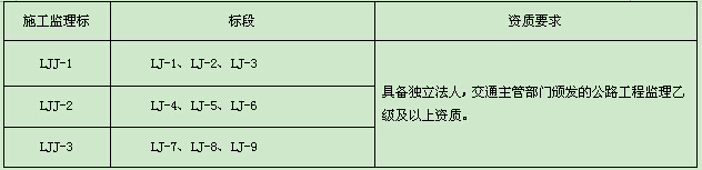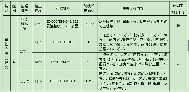 本次招标的路基桥隧工程施工、监理和中心试验室,施工标分为1个类别3个组别9个标段;3个监理标和1个中心试验室标。