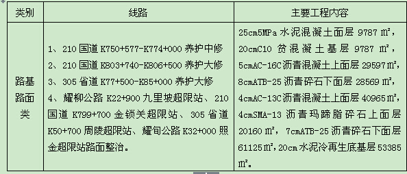 本施工招标内容为路基路面类,划分为1个类别,1个组别,1个标段,具体如下: