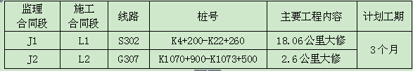 主要工程内容为干线公路大中修工程,预算投资5294万元,计划2015年6月20日开工,2015年9月20日竣工,计划工期3个月。