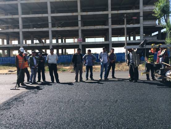 6月7日,榆林公路管理局副局长刘丕兴带领有关专家对该局2015年干线公路省道204大修工程路面上面层SBS改性沥青混凝土施工过程进行检查指导。在施工现场,检查组与大修工程项目办及总监办就SBS改性沥青混凝土施工进行了深入交流。检查组及专家组成员从原材料质量控制、混合料合成级配组成、沥青用量的控制、混合料拌合、现场施工的摊铺设备及摊铺工艺、碾压设备及碾压工艺等方面进行了现场指导。对该施工路段的工作予以肯定,并对下一阶段的工作提出了具体要求,即要继续加强主要原材料SBS改性沥青的检测力度,严格控制沥青混合料的级配组成、拌合和摊铺温度,加强上面层的技术指标控制。各参建单位主要负责人纷纷表示,一定再接再厉继续努力,将该项目按期优质建设好。