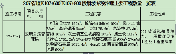 本工程位于207省道岚皋县境内K107+600~K107+800。计划施工工期:2015年7月15日至2015年10月15日,共计3个月。项目批复总投资400.9203万元。