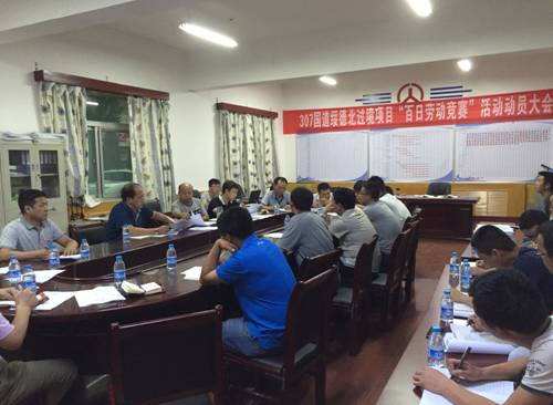 近日,307国道绥德北过境线项目建设管理处组织各参建单位召开了“百日劳动竞赛”第一阶段评比总结会。会议就“百日劳动竞赛”第一阶段评比检查结果作了通报;对各参建单位能积极响应建设管理处的号召,以质量创优为核心,以加强管理为手段,以推进项目高效、安全为目标,实现了既定工程质量目标及生产任务目标,对各参建单位所取得的成绩予以肯定。并就安全生产、工程质量、施工进度、文明工地标准化建设、环境保护、内业资料、档案管理几方面评比得分情况逐一评述,对第二阶段各标段施工进度、组织计划、目标任务,以及第一阶段存在的问题进行了详细说明,起到推动和促进的作用。随后各参建单位的代表一致表示,在第二阶段的劳动竞赛中,将调动一切积极因素,克服施工困难,在稳固保持第一阶段所取得的成果基础上,继续一如既往的发扬劳动竞赛的热潮,再接再励、保质保量实现第二阶段的各项任务指标,纠正施工中存在的问题。最后管理处副处长王植代表建设管理处作了总结发言:一是对第一阶段各标段所取得的成绩表示感谢和赞赏,希望各参建单位认真总结和剖析第一阶段遗留和亟待解决的问题,纠正、弥补和完善不足之处;二是施工进入了主汛期,各标段管理人员要从思想上引起高度重视,做好防洪、防汛工作,必须死守工作岗位,站在施工第一线,确保安全度汛。三是要把安全放在首位,认真贯彻、落实,按照“安全第一、预防为主”和坚持“管生产必管安全”的原则,把安全工作落实到每一级、每一个工序、每一个人。四是要强化职工的环保意识,使保护环境成为参建职工的自觉行为;解决好施工过程中的防尘、防噪,以及路基施工中机械振动问题,协调好与当地居民的关系,思想上决不能干扰居民的正常生活作息。五是要认真贯彻执行管理处的各项政策措施,解决好农民工的工资,按季度、按期足额发放,积极保障农民工的合法权益和利益,体现尊民、爱民的思想。