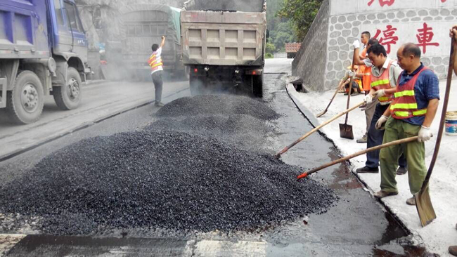 该段通过现场调查,组织专业技术人员对病害进行统计,针对路面破损严重路段采用新铺设沥青面层的方式全面治理,严格施工工序和责任要求,明确质量标准,并利用机械开挖、机械夯实等手段提高劳动效率。在施工过程中加强对施工人员的管理,要求其按规定摆放好安全警示标志和文明施工标牌。同时安排人员加强现场管理与控制,进行交通疏导,保障施工秩序的同时确保车辆安全通行。目前,已铺设沥青面层2000余平方米。
