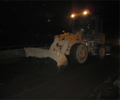 10月19日晚9点30分,省道S205线K77+500处公路发生大面积油泥污染,导致车辆侧滑,交通近半幅堵塞,存在安全隐患。接到报案后,延川公路管理段路政人员在第一时间赶到现场,设立警示标志,并立即调集装载机和人员,清理公路内油泥,抛洒防滑料。经过近六个小时的清理,险情排除,该路段恢复正常通车。
