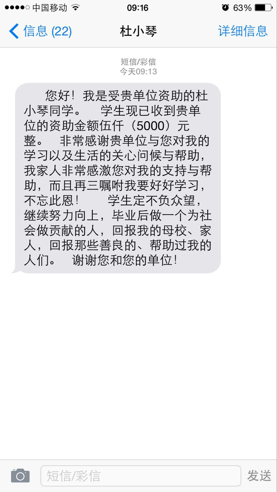 一年来,公司工会坚持对该4名学生的学习动态进行关注及跟踪,他们分别获得了“优秀学生干部”、“优秀团干部”、“先进个人”、“三好学生”等荣誉;其中2名大四学生更是争分夺秒的学习、补课准备考研。为此,经公司领导办公会研究决定:今年继续赞助榆林学院的李永恩、李花、杜晓琴和沈阳农业大学的胡陆明4名贫困生每人5000元。希望能帮助他们顺利完成学业,能够让他们自强不息、发展自己,回报家庭、报效祖国。