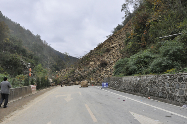 受近期连续降雨天气影响,11月8日下午15时,210国道镇巴杨家河段K1301+600处发生大面积山体滑塌, 110余米公路掩埋,塌方量约3万余方,镇巴通往汉中方向的咽喉道路阻塞,交通中断。