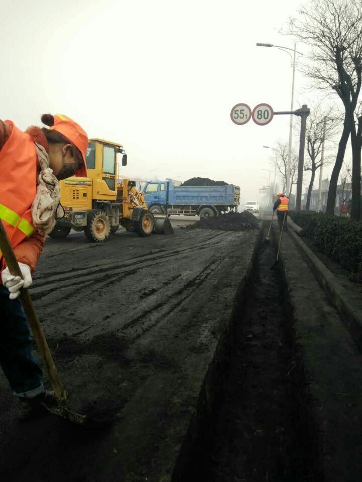 据了解,108国道韩城龙门段是韩城煤炭资源输出的主要途径路段,长期受车流量大和煤粉尘污染等因素的影响,环境极为恶劣。一辆辆满载煤炭的大货车呼啸而过,不时有煤粉尘飘落下来,由于车辆不停的过往,煤粉尘四处飘洒,公路两侧店铺的墙壁和招牌都被染成了黑色,长时间积存的煤粉尘更是淹没了大半个水沟,若遇雨季,极易造成水毁。为积极响应韩城市委市政府加强龙门地区环境综合整治,改善龙门地区环境质量,韩城市公路管理部门从2016年1月1日起,在大力做好路面治超治抛的同时,每天动用挖掘机6个台班、装载机5个台班、农用车60个台班、人工500余人,对108国道龙门段和滨河路公路两侧长达60000余米的排水沟展开全面细致的彻底清理。清理过程中,实行人工与机械相结合的方式,针对人工无法挖掘清理和清理难度大的地方,由挖掘机跟进清除,确保整治成效。