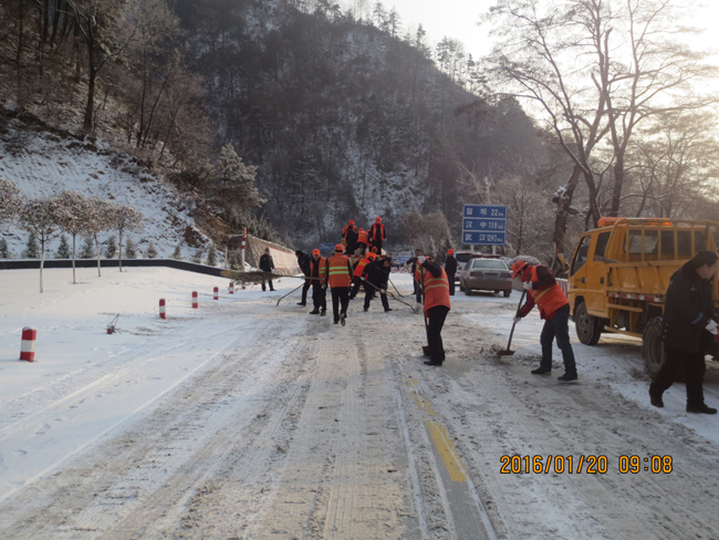 该段组织2支防滑抢险小分队由段领导率领奔赴急坡、陡弯等险情严重路段进行铲雪、除冰,抛洒防滑料及融雪剂;1台装有除雪铲的装载机不间断开展除雪作业;3辆装有防滑料、融雪剂等抢险物资的运输车辆来回补给;同时,路政管理人员积极疏导交通,维护现场秩序。
