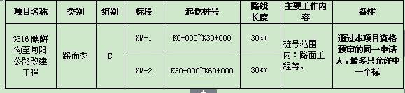 G316白河至麒麟沟和麒麟沟至旬阳公路改建工程已由陕西省发展和改革委员会以《关于316国道凤县灵官峡隧道及引线工程等国省干线公路改建工程可行性研究报告的批复》(陕发改基础〔2014〕1319号)批准立项,陕西省公路局以《关于316国道白河至麒麟沟公路改建工程初步设计的批复》(陕公路函〔2014〕1072号)和《关于316国道麒麟沟至旬阳公路改建工程初步设计的批复》(陕公路函〔2014〕1071号)批准建设,项目业主为安康市交通运输局(以下简称“招标人”),执行机构分别为安康市316国道白河至麒麟沟公路改建工程指挥部和316国道麒麟沟至旬阳公路改建工程指挥部,招标代理机构陕西交通公路设计有限公司(以下简称“代理机构”)。本次招标两个项目建设资金均来自国家补助及市、县自筹,已具备招标条件,现对其路面工程等施工进行公开招标,特邀请有兴趣的潜在投标人(以下简称“申请人”)提出资格预审申请。
