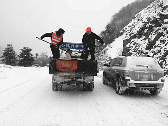 春节假期期间,太白县普降大雪,致使省道210线太白秦岭梁、眉太线五里坡路段出现积雪、积冰,严重影响行车安全。为确保人民群众安全出行,太白公路管理段组织职工及时对结冰路段撒融雪剂,并用铲车铲除积冰,确保管养路段春运期间安全畅通。据统计,春节放假期间共撒布融雪剂4吨,出动除雪铲车、养护车辆共计20余台班。