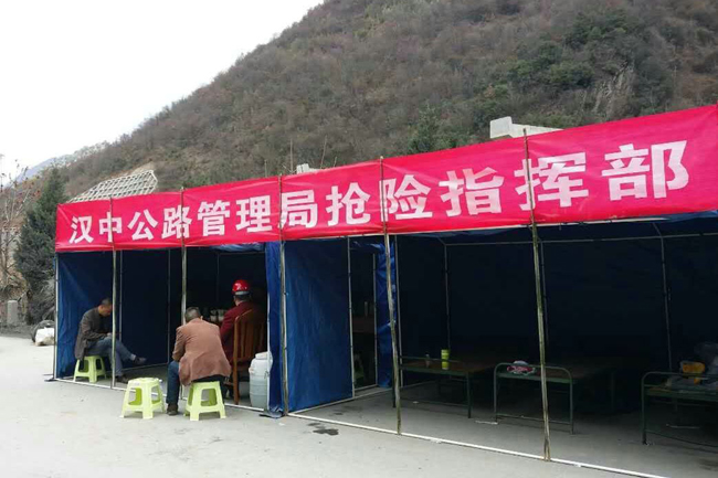 为确保抢险工作有序推进,汉中公路局领导排班轮流在现场指挥抢险,综合协调、抢险工程、安全保畅、路况信息、设备物资、后勤保障、宣传报道7个工作组人员坚守岗位、各司其职。专业排险队伍对危石进行了清除,并于今日15:45对上边坡崩塌残留体进行了第一次爆破,方量约1000方,继续清理了路面塌落物,排除坡面危石、崩塌体计400余立方,累计700余立方。灾害点已经全部采用隔离墙进行封闭作业,禁止车辆和行人进入,以保安全;路政人员协助交警24小时管制交通,在通过手机短信平台发送路况信息的基础上,通过电视台、广播台及时发布抢险信息,引导车辆及早迂回绕行,便捷出行;落实专人定点不间断观测,确保不发生次生灾害,确保排险施工安全。