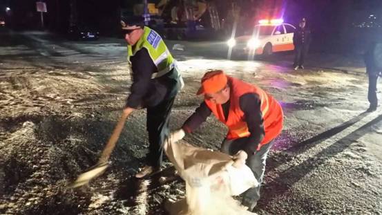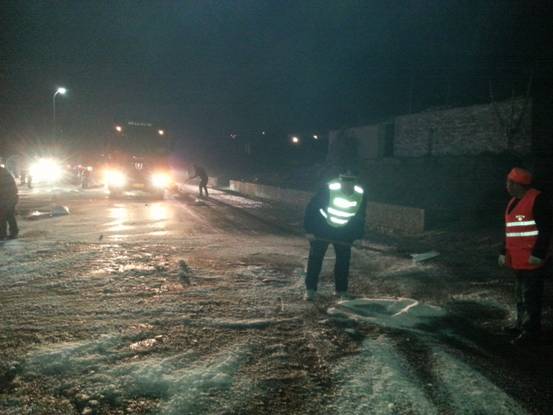 1月27日21时,正值农历除夕,210国道包南线K387+000处米脂益康农产品开发有限公司厂区发生火灾,消防官兵灭火过程中溢流在行车道的大量积水迅速结冰,给过往车辆出行带来极大的安全隐患。 米脂公路段立即启动应急预案,组织抢险人员及物资及时赶赴事发现场。经过2小时全力奋战,于28日凌晨4时将该路面安全隐患被全面排除。此刻,新年的钟声已经响过,米脂公路段职工在大年夜抢险保畅的场面,成了2017年春节最靓丽的一道风景!