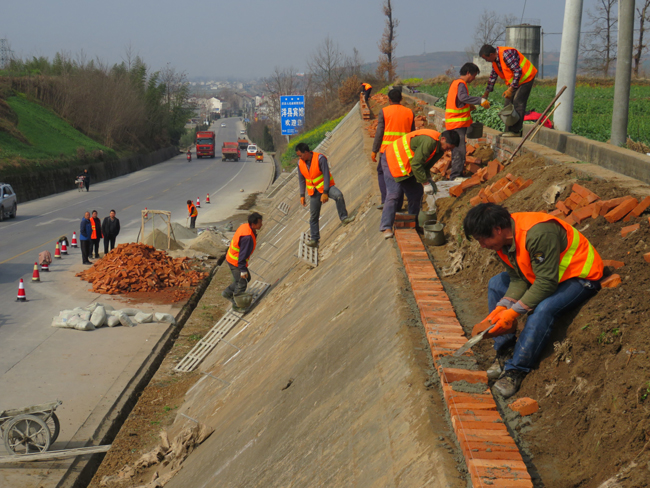 通过近期奋战,完成G108线K1575—K1609+800路段沥青路面坑槽修补140m2;k1577+300路段护坡抹面1100 m2;目前正在设计大型公路宣传标语进行靓化;对谢村至槐树关路段水沟进行全方位无死角清理;K1568+600-K1568+000、K1575+600-800两处水沟损坏较为严重的进行重新整修并加设盖板;同时加大力度进行路面保洁清扫,采取白天人工清扫、保洁,夜间机械清扫突击等措施,并安排专人对道路两侧白色垃圾进行清理,保持了路容路貌的干净整洁,累计投入人工400余工日,机械30余台班。