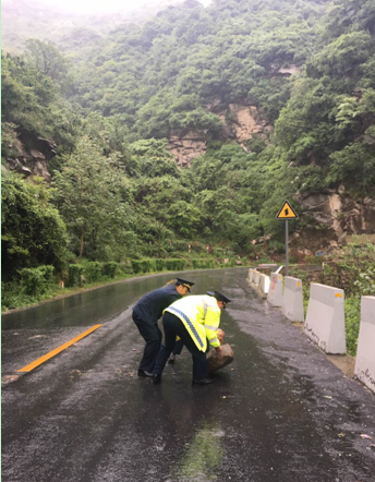长安公路段路政人员冒雨巡查保畅通