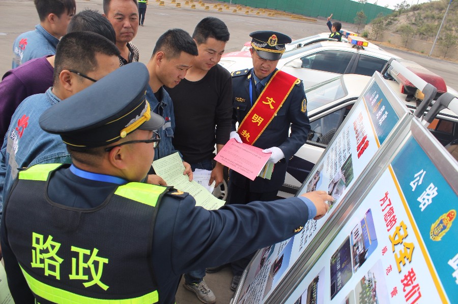 为有效保护路产路权,进一步提高广大司乘人员爱路护路的意识,清除事故隐患,深入开展治理车辆超限超载集中宣传月活动,5月9日鱼河治超站联合横山路政大队横山运政、鱼河驻站公安交警,在本辖区范围内开展“路政宣传月”活动。为了加大宣传效果,扩大活动覆盖面,该站结合自身实际,采取固定与流动宣传相结合的形式开展宣传。一是设立固定宣传咨询点,摆放治超管理工作展板和悬挂宣传标语,向过往群众和司乘人员发放《公路法》、《公路安全保护条例》《超限运输车辆行驶公路管理规定》解读等法律法规宣传手册和宣传单;二是利用乡镇人口密集区,对沿线居民、涉路施工作业点进行保护路产维护路权和安全生产宣传。三是深入厂矿区域发放宣传资料、张贴海报在煤矿源头场地显著位置张贴、悬挂加强超限治理方面的宣传标语宣传。四是深入到公路沿线村镇学校通过内容新颖、形式多样、社会广泛参与的宣传活动,普及路政治超法律法规,增强沿线群众爱路、护路意识。五是邀请榆阳电视台全程报道,向华商报、陕西交通报等杂志报刊进行投稿宣传,并利用微信公众号、短信等媒体工具,大力宣传依法治路的基本原则和要求,进一步扩大宣传的影响力,在社会上营造声势浩大的舆论氛围。通过路政宣传月活动的开展,使他们认识到超限运输的危害性,进一步提升治超管理在全社会的影响力,增强群众爱路护路意识,赢得群众的赞同与支持,有效打击超限运输违法行为,促进了治超管理服务水平的提高,保障人民群众生命安全。(鱼河治超站 张雪芬)