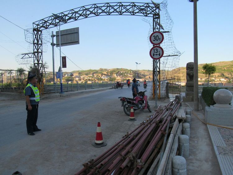 近日,佳县路政执法人员在巡查中发现,所辖省道302佳临黄河大桥上有人私自搭建违章彩门一处,严重影响过往行人、车辆及桥梁的安全。路政执法人员及时联系到当事单位法人,向其宣传《公路安全保护条例》及相关法律法规,告知当事单位法人在公路及公路桥梁违规修建建筑物的危害,同时开出《责令整改通知书》要求其整改,并制作了询问笔录、现场勘验笔录等相关法律文书。当事单位认识到自已的错误,并对违章建筑自行进行了拆除。