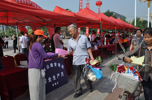 活动期间,一是在人车流量大的路段及广场张贴标语横幅,设置宣传栏;二是在县广场设置咨询台,回答群众有关安全问题咨询;三是发放政策法规宣传册,普及安全法规,向群众积极讲解安全生产法、公路安全保护条例、消防安全常识须知等方面知识。通过以上措施,进一步提升了群众的安全意识,营造了浓厚的安全文化氛围,为创建平安公路、推动生产经营单位落实安全生产主体责任,维护社会稳定打造坚实的群众基础。
