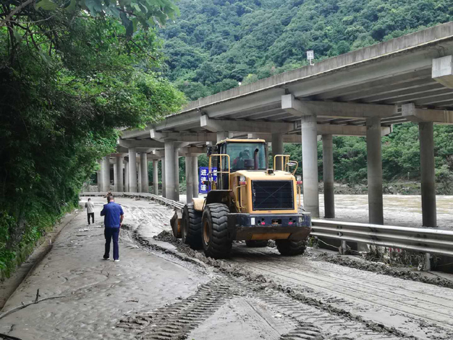 晚20:30分:接巡查人员报告,因河水暴涨,G244线K1012+200~K1012+500留坝县武曲铺段因暴雨导致河水淹没公路,交通完全中断。险情就是命令,路政人员随即封闭了道路,紧急疏散现场滞留车辆,并提供了绕行G85高速方案。养护值班人员加强了沿线雨情及汛情观测、住户群众及滞留车辆的劝返工作。16日10时洪水实测流量:马道褒河洪水流量为2130m3/s,超警戒水位213%。经值班人员统计:国道244线上水路段共计7处,淹没长度6.3公里;沿线塌方72处,共计约8000余立方米,排水沟、涵洞淤积49处12400延米。至8月17日上午,国道沿线无次生灾害发生,无沿线驾驶员和群众被困,洪水逐渐褪去,灾后的国道244满目疮痍,路面冲毁、上边坡坍塌、路面水沟涵洞淤塞、构造物损毁。留坝公路管理段共计投入装载机16台、大型运输车22台、小型养护车6台、挖掘机2台、低压清洗车1台、洗扫车1台、人工120余人,全力恢复灾后国道通行。至8月17日下午,国道单幅已可通行,预计至8月20日将全面恢复正常通行。