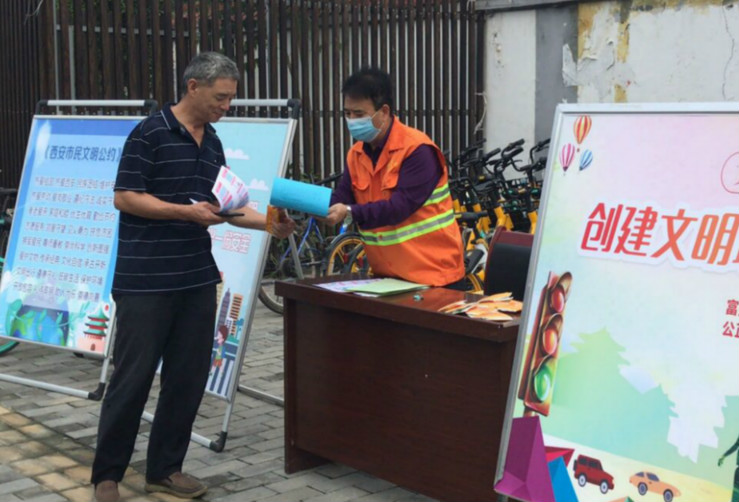 近日,三桥公路段的志愿者们在沣东新城王寺街道支起宣传桌、摆放创文展板,普及创文知识,倡导文明新风。活动中,志愿者向过往群众发放《创文知识应知应会》彩页,讲解创建全国文明城市的目的、意义、取得的成效以及群众如何参与文明创建,倡导群众从我做起、从身边做起、从小事做起,自觉践行《西安市民文明公约》,争做文明有礼的西安人,为创建文明城市贡献自己的力量。