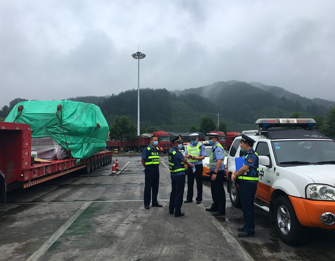 接报后,汉中路政执法支队立即组织路政管理科和直属大队迅速赶往违法地点进行核查。执法人员到达天汉水城服务区后,对该车的《超限运输车辆通行证》《监护方案》等进行了核查,并进行了比对,发现该大件运输车辆确有存在未按审批路线行驶的违法行为。