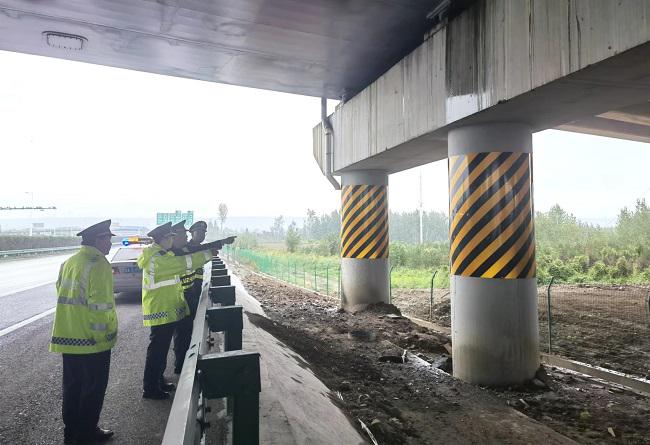 宋瑞林、禄勇民副支队长带领机关相关科室人员前往包茂高速西镇段、西安外环高速南段,指导四、六大队开展路政执法巡查、桥下空间治理、安全隐患排查等工作。在雨中,宋瑞林、禄勇民副支队长与大队路政执法巡查人员一起下到高速公路护坡、边沟,对排水情况进行检查,要求大队结合近日连续阴雨天气,加大对边沟、排水设施的检查,及时消除隐患。在包茂高速西镇段,下沉小组路遇停在应急车道更换轮胎的车辆,宋瑞林、禄勇民副支队长发现该车超宽占用应急车道,对过往车辆造成安全隐患,立即疏导车辆,提醒后方车辆注意避让,同时协助司机设置警示标志、更换轮胎,直到车辆安全驶离。