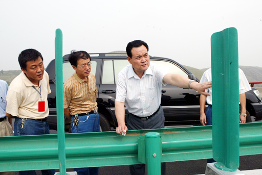 [曹森厅长检查靖安高速公路防眩板安装情况。]