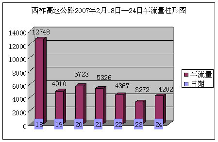 由于西柞高速是车程最便捷的陕南旅游线,加之免收通行费, 2月18日车流量比平常增长了2倍多。正常收费后,车流量有所下降,但因春节放长假,车流量和往常相比仍然较大。