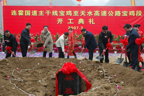洪峰副省长和宝鸡市、省交通厅等有关领导为宝天高速公路奠基。