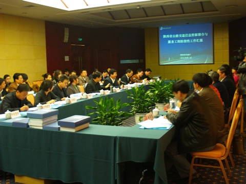 2009年2月21日上午,“陕西省公路交通信息资源整合与服务工程”阶段性检查汇报会在西安顺利召开。检查组由部规划司于胜英副司长带队,部规划司、规划院、公路院等单位一行八人组成,王明祥副厅长、李永民副厅长出席了会议,厅科教处、厅信息中心做了“整合工程”阶段性工作汇报,省公路局、省运管局、省收费中心等单位进行了补充发言。