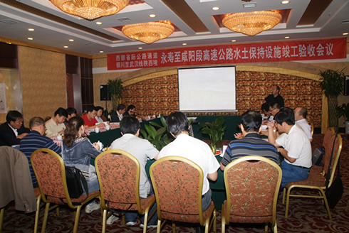 验收组成员现场查看了永咸高速重要路段的水土、绿化保持情况,并在咸阳召开了验收会议。会上,永咸管理处副处长薛志文分别从永咸项目工程主体概况、设计主要技术标准、水土保持方案批复过程以及该项目水土保持投资概算等方面对永咸高速公路水土保持工作进行了总结汇报,监理、监测单位分别结合工作实际对项目建设中水土保持工作做了相应的报告。