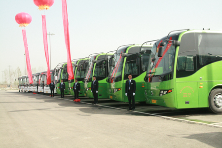 4月18日,陕西交通运输系统“讲文明 畅交通——我为世园添光彩”启动仪式在世园会主入口停车场举行。为世园会投放的500辆旅游车、300辆公交车及1003辆出租车即日起正式投入运营。