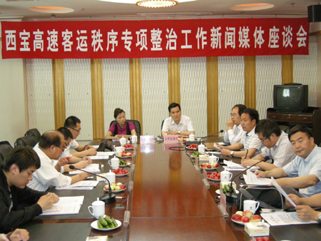 近日,省交通运输厅在全省开展了为期8个月的汽车客运站及周边经营秩序专项整治行动,再次把西宝线上旅游车辆超越许可事项擅自从事班线客运的非法经营行为作为整治的重点。为切实取得全社会的支持理解,形成各部门打击非法经营行为的联动机制,使西宝高速客运经营秩序得到根本性治理,4月28日上午,宝鸡市运管处召开西宝高速客运秩序专项整治工作媒体座谈会,邀请驻宝鸡《陕西日报》、陕西人民广播电台、陕西电视台、《华商报》、《三秦都市报》各媒体记者站及《宝鸡日报》、宝鸡人民广播电台、宝鸡电视台、《宝鸡新闻网》等媒体参加,同时,宝鸡市委宣传部、市纠风办、市文明办、市交通运输局等有关部门及部分市人大代表、市政协委员、客运企业负责人出席了会议。