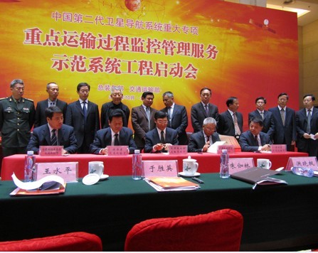 10月24日,交通运输部和解放军总装备部在京联合组织召开了“重点运输过程监控管理服务示范系统”启动会, 标志着交通运输领域北斗应用示范工程正式启动实施,将率先应用于重点营运车辆监控管理。