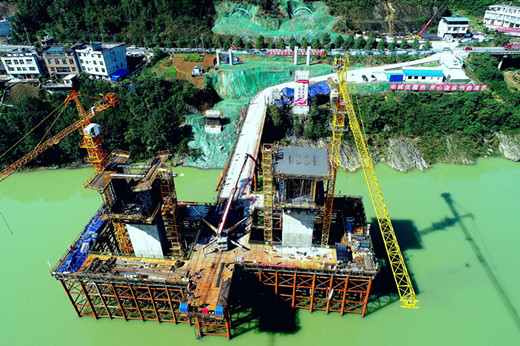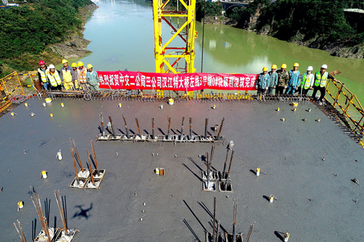 10月17日下午13点30分,安岚高速汉江特大桥主桥首个0号块浇筑完成。