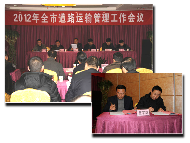 会议还对2011年全市运输管理工作先进单位及个人进行了表彰,并与各县区运管所负责人签订了2012年工作目标责任书,还组织所有参会人员观摩了市级道路运输车辆卫星定位平台中心监控演示。