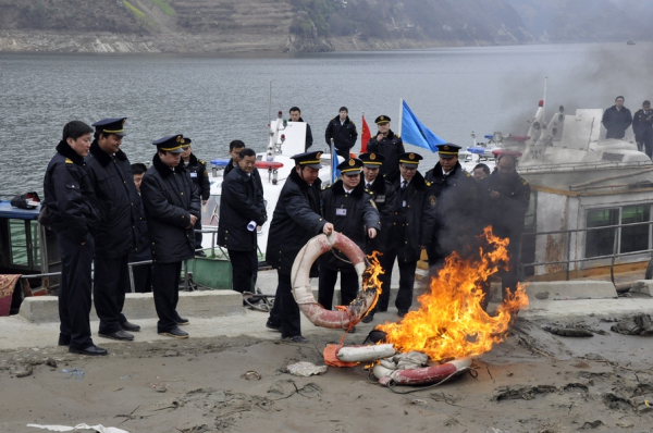 为确保安康市水上安全形势持续稳定,连日来,安康海事部门在“蛟龙”综合执法行动中,把客船、高速客船、渡船、旅游船按乘客定额100%配备救生衣,作为安全防范的重点,在严查货运船舶运营安全的同时,进一步加大对客、渡、游船舶救生设施及消防器材的检查力度,积极宣传船舶救生设施在预防和减少水上交通安全事故危害中的重要作用。行动中,对发现问题当场予以纠正,并对不符合安全要求的破烂救生设施现场集中销毁。