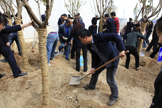 同事们五个一群、三个一组,有的挖坑,有的扶苗,有的培土,植树现场一派热火朝天的景象。参与人员不顾一身土,一身汗,经过自身的辛勤劳动,各科室种植了属于自己的树苗,为中心环境绿化洒下了一片绿的希望。